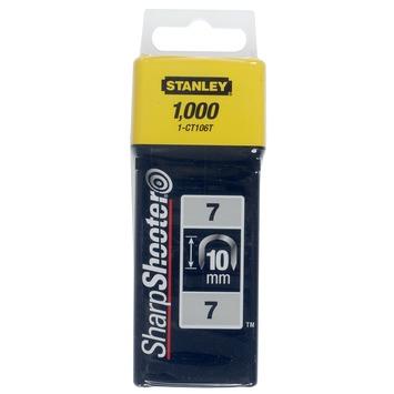 De Stanley kabelkrammen 1-CT106T type 7 hebben een ronde bovenkant en zijn ideaal voor het bevestigen kabels, ijzerdraad, gaas, etc. Ze zijn gegalvaniseerd, dus bestand tegen corrosie. Breedte: 8mm. Hoogte: 10mm. De verpakking bevat 1000 kabelkrammen.