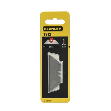 De Stanley reservemesjes (0-11-921) hebben geen gaten en zijn 62mm lang. Deze mesjes zijn met name geschikt voor zwaar snijwerk zoals het snijden van tapijt of vinyl. De mesjes zijn 0,65mm dik en 19mm hoog en zijn te koop in een verpakking van 5stuks.