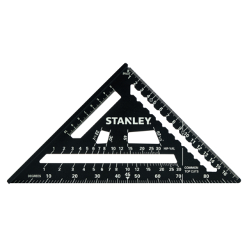 De STANLEY bouwdriehoek STHT46101-0 is een zeer veelzijdig hulpmiddel voor al je projecten. Eén zijde heeft een extra dik profiel, waardoor hij als zaaggeleider kan worden gebruikt. Met een 90° gradenboog en schaalverdeling per graad voor het eenvoudig meten van hoeken. Standaardhoeken van dakspanten zijn snel en gemakkelijk af te tekenen. Diverse uitsparingen houden je potlood op zijn plaats, zodat je perfecte lijnen kunt trekken over de hele lengte van een plank. Met een pivoteerpunt voor gebruik als gradenboog. Door zijn afmetingen past hij gemakkelijk in je gereedschapskist. Gemaakt van aluminium. Lengte: 180 mm.
