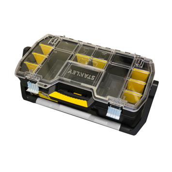 De Stanley gereedschapsbak met organizer 24" is een praktische opberger voor al uw gereedschap en accessoires. De gereedschapskoffer is uitgerust met een handige drukknop waarmee u de organizer eenvoudig kunt ontgrendelen. Daarnaast is de organizer voorzien van een uitneembare verdeling voor het overzichtelijk opbergen van gereedschap en kleine onderdelen. De koffer heeft robuuste RVS sluitingen en een metalen, wegklapbare handgreep over de volle lengte. Zo blijven uw spullen goed op hun plek, ook wanneer u ze transporteert.