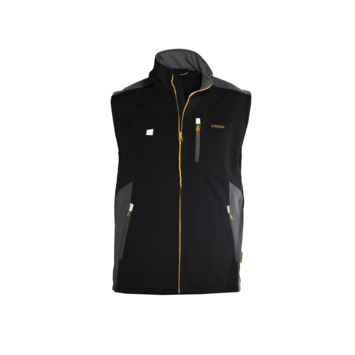 De softshell stof van buiten zorgt voor een waterafstotende werking en de microfleece aan de binnenzijde zorgt dat je goed warm blijft door weer en wind. De bodywarmer heeft 3 zakken met ritsen een extra borstzak met klep. De koordelastiek in de zoom van onder zorgt dat de pasvorm goed aansluit. De reflectiedelen voor en achter zorgen voor een goede zichtbaarheid