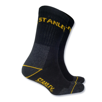 De Stanley sokken zijn comfortabel en slijtvast, door de versterkte zone aan de hiel. De sokken zijn gemaakt van elastisch en ventilerend materiaal dat vochtafdrijvend werkt. (hydrovent technologie). De sokken zijn verpakt per 3 paar en verkrijgbaar in 2 maten; 39-42 en 43-46