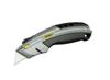 Het Stanley instant change uitschuifmes (0-10-788) is een multifunctioneel mes van 180mm lengte met een ingebouwde koordsnijder. Het mes is uitgevoerd in metaal en heeft een handgreep van zacht elastomeer. Dit maakt het geheel tot een robuust en licht mes. Met één druk op de knop kunt u eenvoudig het mes verwisselen. De interlock neusverbinding zorgt ervoor dat het snijmes, ook onder grote kracht, niet naar boven gedrukt wordt. In de handgreep van het mes bevindt zich een opbergruimte waar 8 reservemesjes in passen, het mes wordt standaard geleverd met 3 reservemesjes.