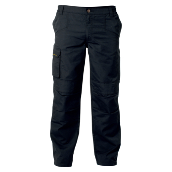 Een samenstelling van 65% polyester en 35% katoen en gramsgewicht van 260 g/m2 maken de werkbermuda slijtvast. Door verwerkte elastiek in beide zijden heeft de broek een goede pasvorm met bewegingsvrijheid. Diepe steekzakken voor en op de achterzijde zakken met kleppen en op de rechterzijde extra cargozak met klep en klittenbandsluiting en 2 sleuven voor schrijfwaren op de linkerzijde van de broek. Kniezakken met opening aan de bovenkant.
