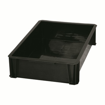 Handige en stevige stapelbare krat. Ook prettig om op verrijdbare “hondjes” te plaatsen.