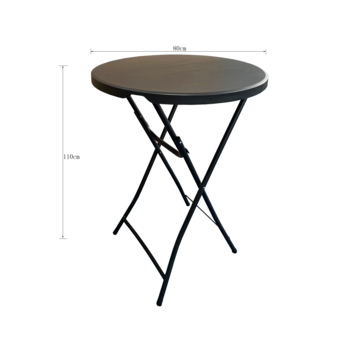Met deze zwarte statafel van 110 cm hoog heb je een stabiele plek voor drankjes of hapjes. Het ronde blad van 80 cm diameter is 4,5 cm dik en van HDPE, stevig en makkelijk schoon te maken. Geschikt voor 5 personen, handig voor een borrel of tuinfeest. Het stalen frame zorgt voor stabiliteit en het opvouwbare ontwerp maakt opbergen eenvoudig. Ideaal voor regelmatig gebruik, zowel binnen als buiten.