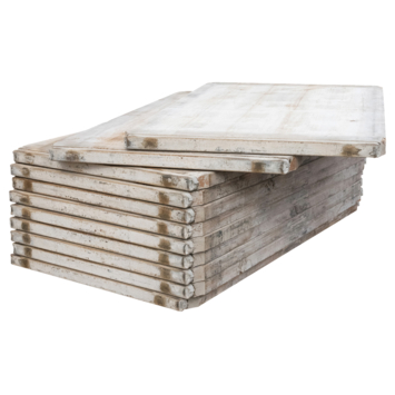 Steenschotten worden toegepast in ambachtelijke steenfabrieken. Stenen die net gebakken uit de oven komen worden op deze schotten gelegd om te drogen. Door de warmte van de stenen krijgen de schotten een verweerde uitstraling. Deze houten platen, oftewel steenschotten, zijn afgekeurd voor gebruik in de steenfabriek maar nog prima materiaal om mee te werken.