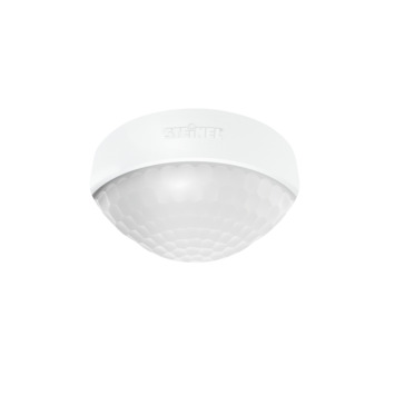 Het multitalent voor binnen en buiten. Infrarood-bewegingsmelder IS 360-3, ideaal voor plafondmontage onder afdaken, in carports, op grote gevels en bij inritten, 3 pyrosensoren voor 360° registratiehoek, reikwijdte instelbaar tot 12 m, tijd- en inschakelniveau instelbaar, m.b.v. afdekplaatjes te verkleinen registratiegebied.