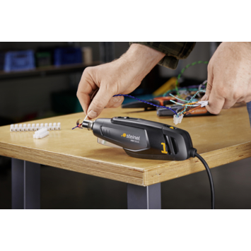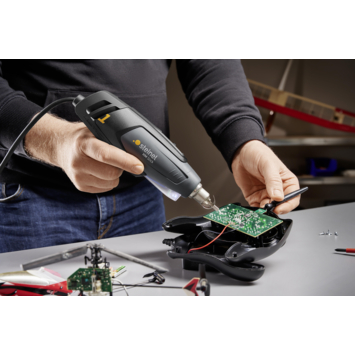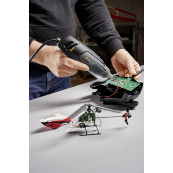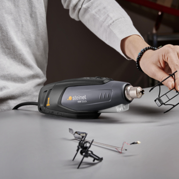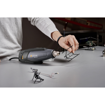 Het Steinel HM Stick heteluchtpistool is ideaal voor modelbouw, kleine reparaties en soldeerklussen. Het apparaat levert 350 watt vermogen en een temperatuur van 400°C tot 500°C. Dankzij het luchtvolume van 100 liter per minuut werk je nauwkeurig. De LED-lamp biedt goed zicht op het werkstuk en het 2,2 meter lange snoer geeft voldoende bewegingsruimte. Geschikt voor het krimpen van kabels, bewerken van kunststof en losmaken van soldeerpunten. Inclusief verschillende mondstukken voor veelgebruikte toepassingen.