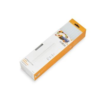 De lijmsticks hebben een afmeting van 11mm en een lengte van 250mm. Ze zijn ideaal voor het verlijmen van allerlei materialen zoals hout, kunststof, keramiek en metaal. Er zitten 40 sticks in de verpakking. Je kan dus voorlopig wel vooruit met de patronen. De kleur van het patroon is doorzichtig. Daarom kan je ze overal voor gebruiken. Kortom, de Steinel Lijmpatronen Crystal 11mm 1000gr zijn ideaal voor de lijmende klusser.