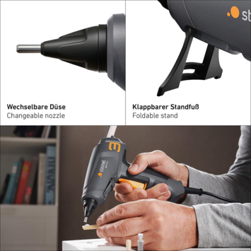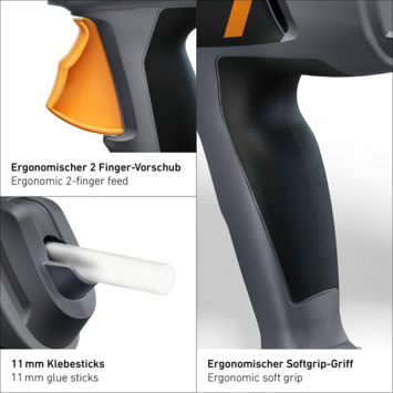 De Steinel lijmpistool GlueMatic 3011 is een betrouwbaar lijmpistool voor uiteenlopende klussen in huis of de werkplaats. Van reparaties tot knutselen: met 11 mm lijmpatronen en een lijmopbrengst van 16 g/min werk je snel en precies. Het apparaat warmt op in slechts 7 minuten en ligt prettig in de hand. Dankzij de geïntegreerde standaard blijft het stabiel tijdens gebruik. Een fijn en lang mondstuk is optioneel verkrijgbaar. Geschikt voor transparante én gekleurde lijmsticks van 11 mm. Inclusief 3 lijmpatronen, direct klaar voor gebruik.