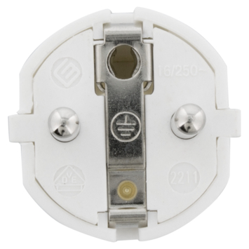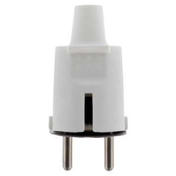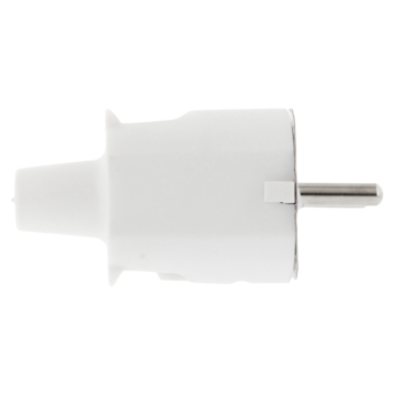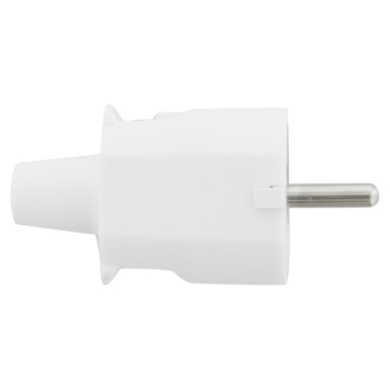 Stekker met randaarde pvc wit, voor montage op een elektriciteitssnoer. Maximale aansluitwaarde van 16 ampère.