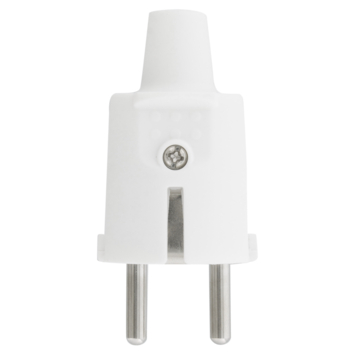 Stekker met randaarde pvc wit, voor montage op een elektriciteitssnoer. Maximale aansluitwaarde van 16 ampère.