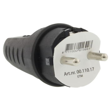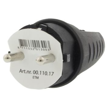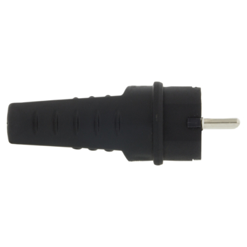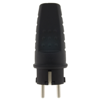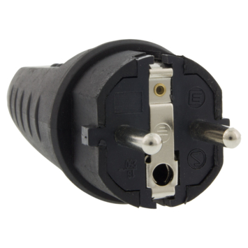 Deze stekker is gemaakt van rubber en is 2-polig. De stekker is geaard en valt onder beschermingsklasse IP44. Deze is hiermee spatwaterdicht en geschikt voor buitengebruik.