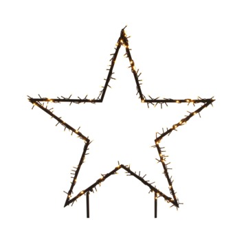 Deze tuinsteker ster met verlichting uit de collectie van Luca Lighting is een echte sfeermaker tijdens de mooiste dagen van het jaar. Rondom het stevige metalen frame zit een snoer met 225 energiezuinige led lampjes gewikkeld. De ster staat op twee metalen pinnen die je makkelijk in de grond kan steken. Het frame met een hoogte van 90 cm is voorzien van een sterke zwarte lak en zal overdag niet echt opvallen, maar in de avond wanneer de 225 lampjes branden is de ster een echte blikvanger.