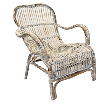 Handgemaakte lounge stoel van rotan in white wash. Leuk als eyecatcher op het terras. Ook geschikt als binnenmeubel.