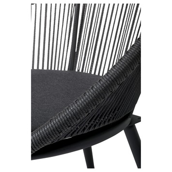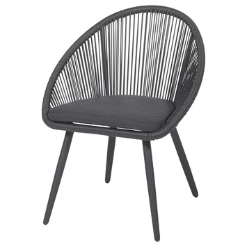 Een mooie en robuuste stoel. Inclusief stoelkussen. De metalen dwarslatten van de zitting staan echter ver uit elkaar, waardoor je deze ook goed voelt als er een kussen op ligt. Heb zelf een stuk hard volieregaas in dezelfde vorm van de zitting uitgeknipt en er op vast gemaakt. Nu zit ie prima.