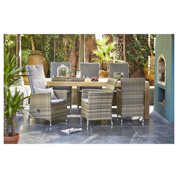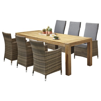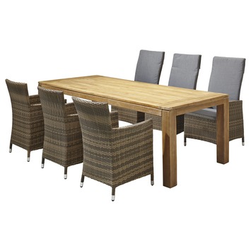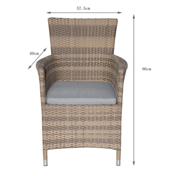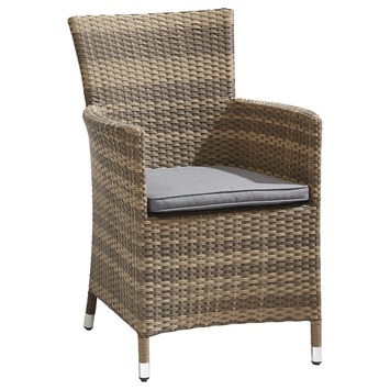 De stoel Marseille is een stevige, prettige tuinstoel. De stoel is gemaakt van grijs wicker, en daarmee zorgt hij voor een natuurlijke uitstraling in uw tuin. De poten zijn van metaal, dat zorgt voor een extra lange levensduur. De stoel heeft armleuningen waardoor u er lekker lang comfortabel in kunt zitten. De Marseille stoel is 89 centimeter hoog en 59 centimeter breed. Hij wordt geleverd met een antracietkleurig zacht zitkussen. In dezelfde serie zijn nog meer producten verkrijgbaar bij GAMMA. Bevalt deze stijl u? Kijk dan ook eens naar de verstelbare Marseille stoel of lekkere fauteuil. Maar ook een complete loungeset is verkrijgbaar.