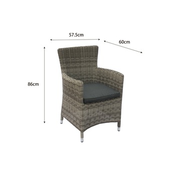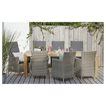 De stoel Trentino is een stevige, prettige tuinstoel. De stoel is gemaakt van grijs wicker, en daarmee zorgt hij voor een natuurlijke uitstraling in uw tuin. De poten zijn van metaal, dat zorgt voor een extra lange levensduur. De stoel heeft armleuningen waardoor u er lekker lang comfortabel in kunt zitten. De Trentino stoel is 89 centimeter hoog en 59 centimeter breed. Hij wordt geleverd met een antracietkleurig zacht zitkussen. In dezelfde serie zijn nog meer producten verkrijgbaar bij GAMMA. Bevalt deze stijl u? Kijk dan ook eens naar de verstelbare Trentino stoel of lekkere fauteuil. Maar ook een complete loungeset is verkrijgbaar.