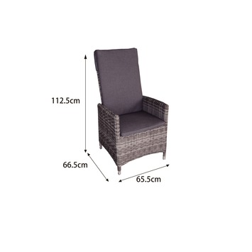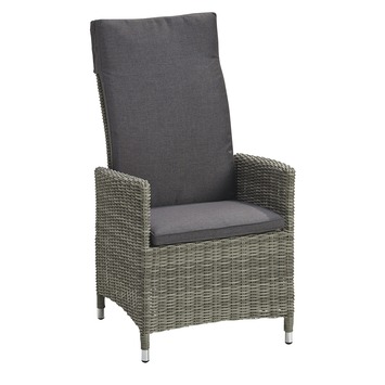 De verstelbare stoel Trentino is een stevige tuinstoel waarvan u de rugleuning kunt verstellen. U kunt dus rechtop zitten, maar ook lekker achterover om te genieten van de zon. De stoel is gemaakt van grijs wicker, en daarmee zorgt hij voor een natuurlijke uitstraling in uw tuin. De poten zijn van metaal, dus dat zorgt voor een extra lange levensduur. De stoel heeft armleuningen en dat zorgt ervoor dat u er lekker lang comfortabel in kunt zitten.De Trentino stoel is 1 meter 12 hoog en 69 centimeter breed. Hij wordt geleverd met een antracietkleurig zacht zitkussen en een kussen voor in de rug. Hij is dus helemaal compleet.In dezelfde serie zijn nog meer producten verkrijgbaar bij GAMMA. Bevalt deze stijl u? Kijk eens naar de Trentino stoel die goed past bij een van de ruime eettafels uit het GAMMA-assortiment. Maar ook een complete loungeset is verkrijgbaar.