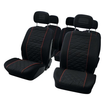 Een Stoelhoesset 10-delig bestaat uit 5 stoelhoezen en 5 hoofdsteunhoezen. De pasvorm van deze hoezen is universeel en dus te gebruiken in zo mogelijk alle auto’s. Daarnaast zijn de hoezen geschikt om te gebruiken in auto’s met een zij-airbag. Met de Stoelhoesset 10-delig beschermt u de stoelbekleding in uw auto tegen vuil en voorkomt u vlekken. De hoezen geven uw auto een nieuwe en chique uitstraling dankzij de zwarte stof met rode bies. Kortom, met de Stoelhoesset 10-delig gaat u slijtage van de bekleding in uw auto tegen, zodat uw autobekleding langer meegaat.