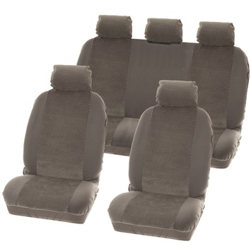 Een Stoelhoesset Denver Grijs 9-delig bestaat uit 2 voorstoelhoezen, 5 hoofdsteunhoezen en een achterbankhoes bestaande uit rugleuning en zitting. De hoes voor de achterbank is deelbaar door middel van 3 ritsen. De pasvorm van deze hoezen is universeel en dus te gebruiken in zo mogelijk alle auto’s. Daarnaast zijn de hoezen geschikt om te gebruiken in auto’s met een zij-airbag. Met de Stoelhoesset Denver Grijs 9-delig beschermt u de stoelbekleding in uw auto tegen vuil en voorkomt u vlekken. De hoezen zijn grijs en gemaakt van 100% polyester. Dankzij de Stoelhoesset Denver Grijs 9-delig gaat u slijtage van de bekleding in uw auto tegen, zodat uw autobekleding langer meegaat.
