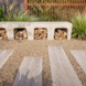 De betonblokken zijn ideaal om ons kunstwerk in de tuin op te zetten, daarbij zijn ze neutraal van kleur en esthetisch kwa vorm helemaal goed voor ons kunstwerk