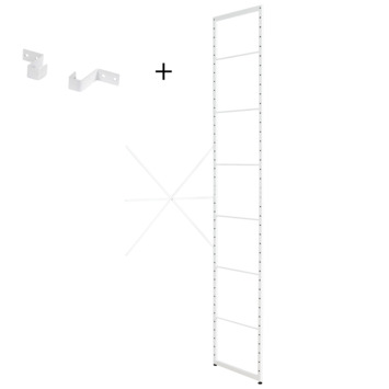 De storage aanbouwset wit hoort bij het Duraline staande storage systeem en creëert een moderne, functionele open opslagoplossing. Die op meerdere manieren kan worden gebruikt zoals voor kleding, boeken, schoenen, keukenartikelen en veel meer. Deze Duraline aanbouwset is te gebruiken in combinatie met de Duraline Storage startset. Het Duraline storage systeem heeft verschillende planken, manden en roedes om uw eigen, op maat gemaakte systeem samen te stellen. In de verpakking zit 1 muurbevestigingsbeugel om de aanbouwset aan de muur te bevestigen.