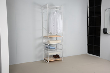 De storage startset wit hoort bij het Duraline staande storage systeem en creëert een moderne, functionele open opslagoplossing. Die op meerdere manieren kan worden gebruikt zoals voor kleding, boeken, schoenen, keukenartikelen en veel meer. Deze Duraline startset is te gebruiken in combinatie met de Duraline Storage aanbouwset. Het Duraline storage systeem heeft verschillende planken, manden en roedes om uw eigen, op maat gemaakte systeem samen te stellen. In de verpakking zitten 2 muurbevestigingsbeugels om de startset aan de muur te bevestigen.