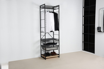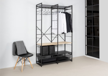 De storage startset zwart hoort bij het Duraline staande storage systeem en creëert een moderne, functionele open opslagoplossing. Die op meerdere manieren kan worden gebruikt zoals voor kleding, boeken, schoenen, keukenartikelen en veel meer. Deze Duraline startset is te gebruiken in combinatie met de Duraline Storage aanbouwset. Het Duraline storage systeem heeft verschillende planken, manden en roedes om uw eigen, op maat gemaakte systeem samen te stellen. In de verpakking zitten 2 muurbevestigingsbeugels om de startset aan de muur te bevestigen.