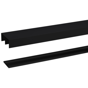 Boven- en onderrail voor het maken van je rollende schuifdeuren. Deze rail van StoreMax combineer je met StoreMax deursets R-40 of R-60. Met een lengte van 240cm is deze rail geschikt voor 3 deuren. Dit type rail is ook beschikbaar in lengte 180cm (2deuren) en 360cm (4deuren) en in de kleur wit en aluminium i.p.v. zwart. Bevestig de rail met de schuine kapclip van StoreMax bij het plaatsen van deuren onder een schuin dak.