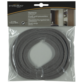 Houd je schuifdeurkast stofvrij met de StoreMax stofstrip kunststof grijs 275 cm. Deze stofstrip is uitgevoerd in de kleur grijs en gemaakt van een speciaal materiaal dat stof opvangt. De stofstrip heeft een lengte van 2,75m. Door de onopvallende kleur past de stofstrip in nagenoeg ieder interieur, of het nu om het stofvrij houden van de schuifdeurkast in je slaapkamer, zolder of bijkeuken gaat. Je monteert de StoreMax stofstrip in slechts een handomdraai. De stofstrip is namelijk voorzien van een speciale kleefrand en daardoor zelfklevend. Minder stof achter je schuifdeuren? Bevestig dan de StoreMax stofstrip.