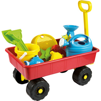 De Androni bolderkar is uitgevoerd in vrolijke kleuren en wordt geleverd incl. diverse leuke speelgoed strand accessoires. De bolderkar bevat o.a.: zandvormpjes, een emmertje, een gieter, een zeef, een hark en een schepje. Een heerlijke bolderkar om dus allemaal spulletjes mee te vervoeren naar bijv. het strand of de zandbak! Deze set is gemaakt van kunststof. Androni is gespecialiseerd in de productie van plastic speelgoed met maximale aandacht voor de veiligheid van kinderen. Androni Giocattoli: QUALITY MADE IN ITALY. Geschikt voor kinderen vanaf 2 jaar.