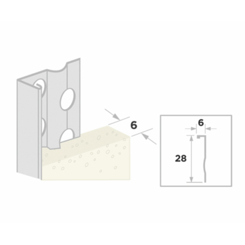 Doordat dit profiel geschikt is voor een stuclaag van 6 mm vormt het een duidelijke en stevige geleider. Je kunt tijdens het stucen makkelijk langs de rechte rand werken, waardoor de laag netjes aansluit op het naastliggende oppervlak. De lengte van 260 cm maakt het mogelijk om grote stukken wand in één keer af te werken. Zo werk je rustig en houd je grip op de vorm en de dikte van de afwerking.