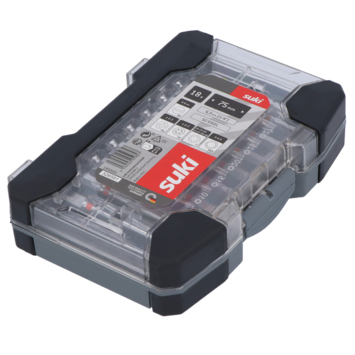 Deze 18-delige bitset van hoge professionele kwaliteit gehard S2-staal met extra lange bits zijn uitermate geschikt voor diepliggende schroeven. Het handige kleurcodesysteem zorgt voor een snelle herkenning van de bitsoort. De set in de overzichtelijke cassette voorziet in de meest gebruikelijke bitmaten; SL 4-6 mm; HEX 3-4-5; T 10-15-20-25-27-30-40; PH 1-2-3; PZ 1-2-3