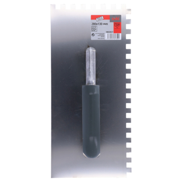 De Suki plakspaan met 8x8 mm tanden is een meesterwerk van roestvrij staal, perfect voor het aanbrengen van bouwlijm. De tanden van 8 mm bij 8 mm zorgen voor een vlekkeloze verdeling van de lijm. Bij het verwerken van sierpleisters, gips en ander stucwerk komt de gladde zijde van de vertande plakspaan goed van pas. Uitgerust met een FSC-gecertificeerd houten handvat, biedt deze plakspaan zowel duurzaamheid als comfort. Geen plakspaan van 8x8 mm nodig? Suki heeft ook een breed assortiment aan plakspanen zonder vertanding en van verschillende materialen.