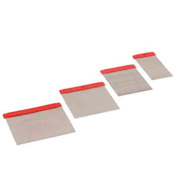 De suki plamuurspatelset van rvs bevat 4 plamuurspatels. De plamuurspatels, die ook bekend staan onder de naam Japanse spatels, zijn gemaakt van roestvaststaal. Dit maakt de messen geschikt voor plamuurwerk ter voorbereiding van schilderwerk. De rvs-spatels van de 4-delige plamuurspatelset hebben allemaal verschillende breedtes, namelijk 120mm, 100mm, 80mm en 50mm. Deze verschillende plamuurspatels zijn niet alleen te gebruiken om mee te plamuren, maar ook voor het bijwerken van onder andere pleisterwerk. Het dunne blad van de Japanse plamuurspatels maakt de plamuurspatelset met 4 plamuurmessen zelfs ideaal om te gebruiken in de keuken bij hak- en snijwerk van groenten bijvoorbeeld.