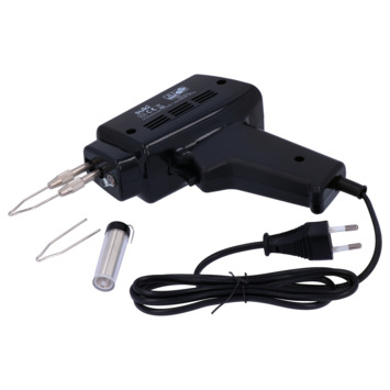 Het suki soldeerpistool van 100W is geschikt voor zachtsolderen. Dit is het solderen van onder andere elektra-onderdelen. Maar ook is dit soldeerpistool geschikt voor het solderen van dunne bedrading en metalen. De soldeerbout heeft een fijne, platte punt, oftewel soldeerstift, met een diameter van 5,8mm. Het soldeerpistool is vergelijkbaar met een elektrische soldeerbout, maar heeft een soldeerpunt in de vorm van een metalen lus. Het pistool van 100W voor soldeerwerk is geschikt voor kortstondig gebruik en is binnen enkele seconden op werktemperatuur. Bovendien heeft het soldeerpistool als bijkomend voordeel een werklicht dat de plek van solderen verlicht. Op zoek naar een soldeerbout tot 100W? Vind ze in het Gamma assortiment.