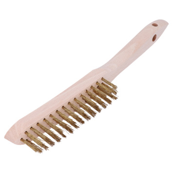Deze suki-draadborstel met 3 rijen draden van messing is ideaal voor het reinigen van kwetsbare materialen. De zachte messing draden beschadigen het te borstelen materiaal namelijk niet. Zo is de draadborstel bijvoorbeeld te gebruiken voor het uitborstelen van houtnerven. Het hout beschadigt niet. Bovendien geeft de draadborstel ook geen vlekken op het hout, zoals een staalborstel wel doet. Zoekt u een andere draadborstel dan deze draadborstel met 3 rijen messing? Bekijk het Gamma assortiment aan borstels.