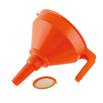 De suki-trechter met zeef is gemaakt van kunststof en heeft een diameter van 16cm. De trechter is geschikt voor het overhevelen van olie, brandstoffen en andere niet-bijtende vloeistoffen. De olietrechter is voorzien van een handgreep waarmee u de trechter makkelijk hanteert. Daarnaast heeft de trechter een metalen vuilzeefje waarin het vuil wordt opgevangen, zodat het niet in uw machine terechtkomt. Naast deze trechter met zeef is er ook een trechter met flexibele tuit in het assortiment.