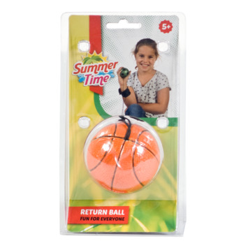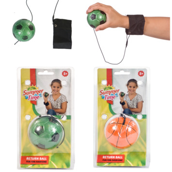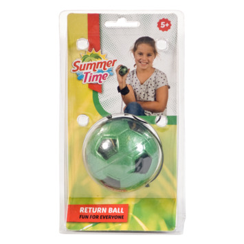 Summertime returnbal,in de kleuren groen en oranje. Doe de band om je pols en gooi de bal weg, maar let op, hij komt snel weer terug! Wordt geleverd in clamshellverpakking. Geschikt voor kinderen vanaf 5 jaar.