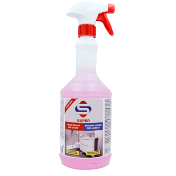 SUPER sanitair reiniger kant & klaar maakt schoonmaken eenvoudig. De krachtige formule verwijdert onmiddellijk kalkaanslag en herstelt doffe kranen en verkleurde voegen. Geschikt voor het hele sanitair: van douchewanden en vloeren tot urinoirs en toiletten. Klaar voor gebruik, verdunnen is niet nodig. Voor optimaal resultaat laat je het product even inwerken en spoel je het met water af.