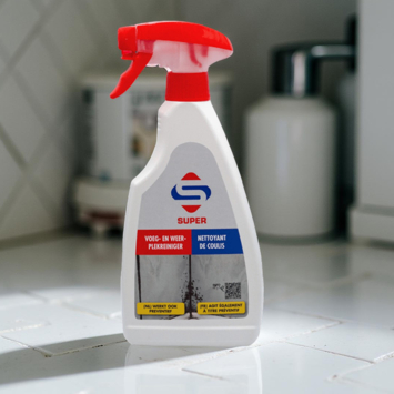 Met SUPER voeg- en weerplekreiniger maak je voegen, kitranden en tegels snel schoon zonder extra stappen. De spray werkt direct, zelfs in vochtige ruimtes, en verwijdert kalk, vet en verkleuringen in één keer. Perfect voor het hygiënisch reinigen van harde oppervlakken in sanitaire ruimtes. De krachtige chloorformule zorgt voor een zichtbaar schoon resultaat en bespaart tijd. Ook ideaal voor douchedeuren, kitranden en plafonds.