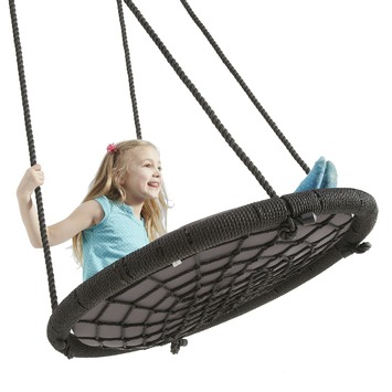 Kinderen kunnen veel plezier beleven aan deze swing. Het is voorzien van een comfortabel kussen en heeft een diameter van 95 cm. Je kunt de swing bevestigen aan een schommelset of boom. De draagkracht is maximaal 150 kg.