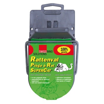 De Swissinno supercat rattenval met lokstof is gebruiksklaar. Het natuurproduct in deze rattenval lokt de rat sterk aan. De val is binnen enkele seconden eenvoudig met één hand op te zetten (spannen, lokstofdeksel eraf en klaar). Het dier kan zonder aanraken verwijderd worden. De Zwitsers design rattenval met degelijk slagmechanisme is niet gevaarlijk voor huisdieren en kinderen en onbegrensd herbruikbaar.