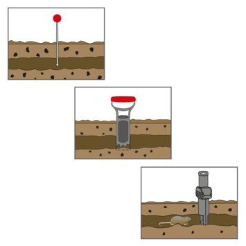 De Swissinno supercat mol- / woelmuis en veldmuis val is eenvoudig te spannen in een paar seconden met één handeling. De hendel tot de klik omhoog trekken en de val is gezet. Geen onnodig graven nodig, past precies in een gat van 6 cm doorsnee. Een val die af is gegaan, is van verre herkenbaar. De hendel gaat terug in de val. Vangt veld en woelmuizen in beide gangrichtingen en is ongevaarlijk voor gebruiker en huisdieren