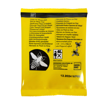 De Swissinno wespenval navulling lokstof 2 stuks is te gebruiken bij de Swissinno wespenval. De navulling wordt in de wespenval met water gemengd en lokt de wespen in de val.