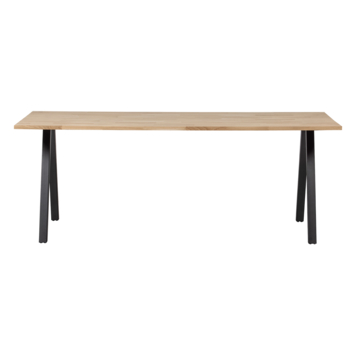 Deze eikenhouten Tablo tafel heeft een lengte van 200 cm en een breedte van 90 cm, zodat je er gemakkelijk met 6-8 personen aan kunt zitten. Het blad is 2,4 cm dik. Het tafelblad heeft een vingerlas houtverbinding en weegt 26,9 kg.