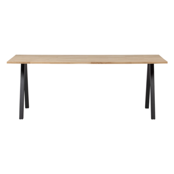 Deze eikenhouten Tablo tafel heeft een lengte van 220 cm en een breedte van 90 cm, zodat je er gemakkelijk met 6-8 personen aan kunt zitten. Het blad is 2,4 cm dik. Het tafelblad heeft een vingerlas houtverbinding en weegt 29,6 kg.