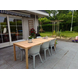De tuintafel is 210 centimeter lang, 90 centimeter breed en 76 centimeter hoog.